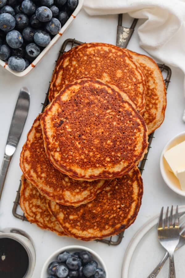 - The maple syrup in the pancake batter is optional and can also be substituted with stevia or munfruit if you prefer.