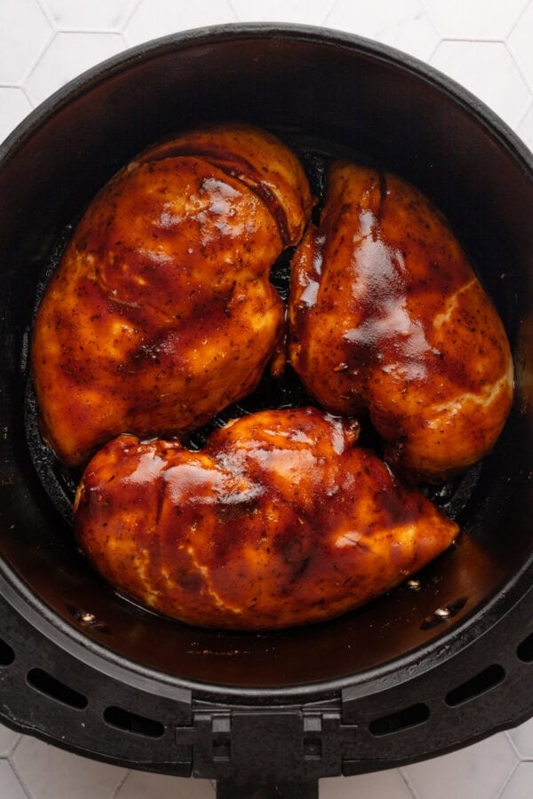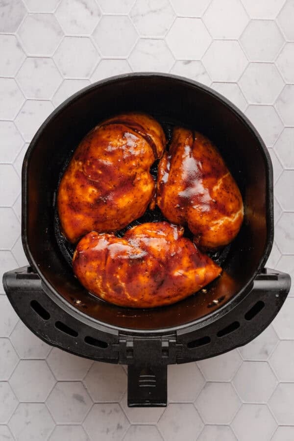 Here is a summary with step-by step photos for how to make this air fryer bbq chicken breast.
