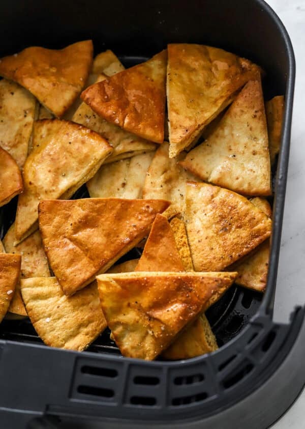 To reheat: If they appear too soft then toast them in the air fryer at 330°F for a few minutes to allow the pita chips to crisp back up.