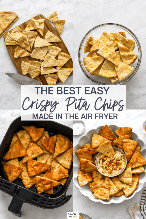 These quick and easy air fryer pita chips come together in minutes with just 3 main ingredients. These pita chips are great served with hummus or any dip you like!