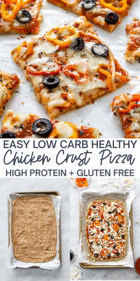 This easy chicken crust pizza is a low carb, high protein pizza crust that is sturdy and delicious. It makes a great healthy alternative to traditional pizza crust and is easy to make with a few simple ingredients.