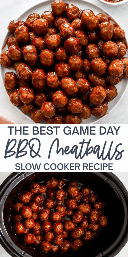 Crockpot BBQ meatballs are the easiest party appetizer you can make with 3 simple ingredients. All you have to do is mix up the sauce, coat the meatballs and cook them in the slow cooker until juicy and flavorful. These appetizer meatballs are the recipe everyone will be talking about!