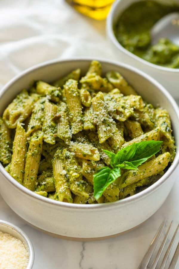 Pesto is loaded with vibrant flavor and is a great healthy addition to any meal.