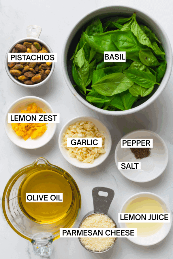 Pesto is made with so many healthy ingredients like fresh basil, bright lemon, olive oil, garlic and pistachios that are packed with vitamins like Vitamin A and C as well as antioxidants.