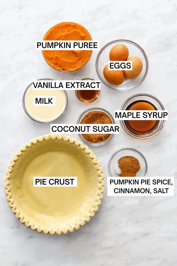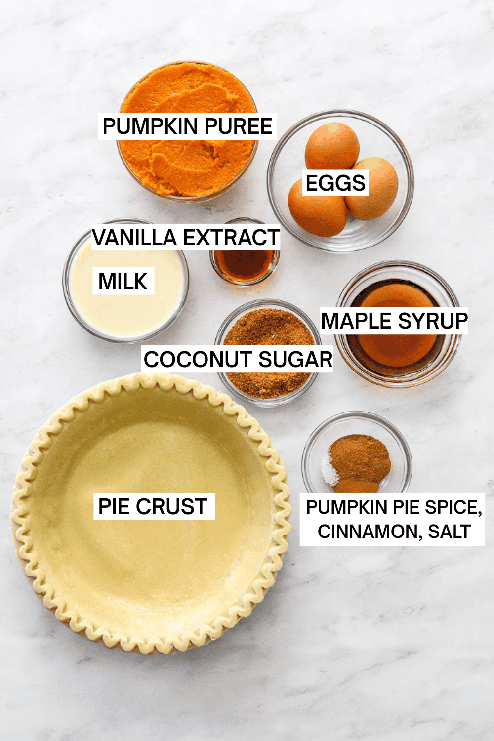 You only need a few simple ingredients to make this healthy pumpkin pie. Here is what you’ll need: