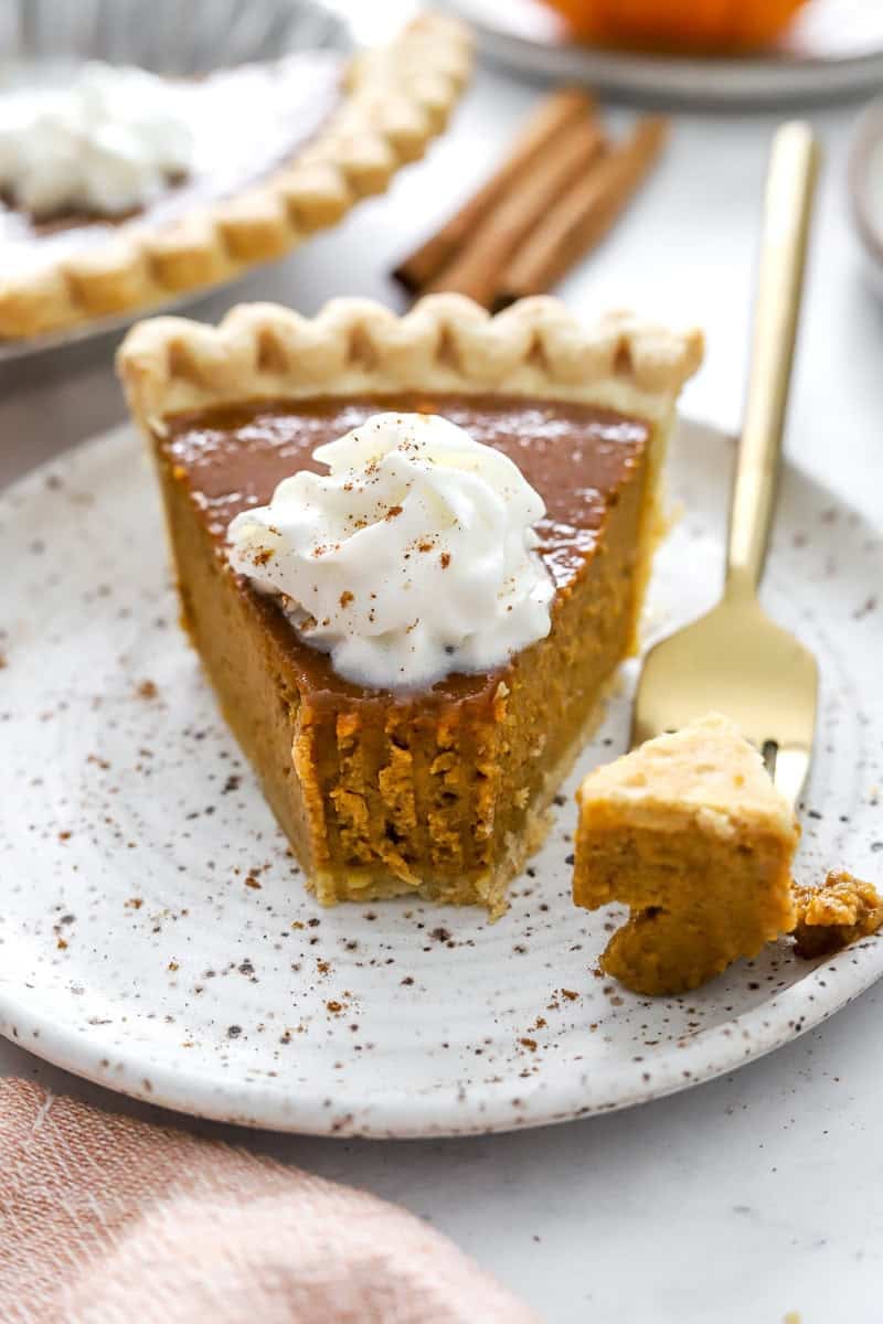 This healthy pumpkin pie recipe is easy to make and is naturally sweetened with maple syrup and coconut sugar. It tastes just like traditional pumpkin pie and will easily become your new favorite holiday dessert!