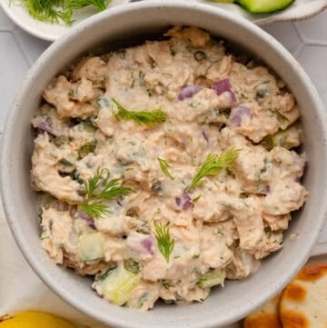 - Dill or scallions – I loved fresh chopped dill in this tuna salad but chopped scallions or chives are also delicious.